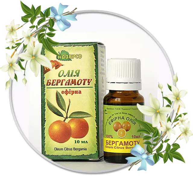 Ефірна олія бергамоту сильний противірусний засіб, ефективний при грипі, герпесі. Підсилює сексуальні можливості. Нормує артеріальний тиск.
