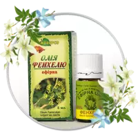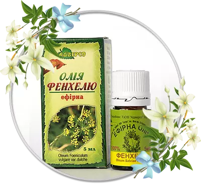 Ефірна олія фенхелю усуває метеоризм, втрату апетиту, атонію ШКТ, аерофагію, сечові камені, подагру, недостатність місячних, легеневі захворювання, грип, болі в шлунку, нервову блювоту, недостатність молока у годувальниць, кишкові паразити. Підтягує шкіру обличчя (1-2 краплі в нічний крем - на 1 прийом).