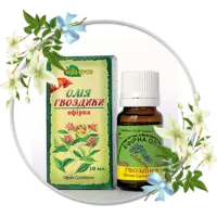 Ефірну олію гвоздики використовують нерозбавленою для зняття зубного болю: ватним тампоном олію наносять на хворий зуб. Добре поєднується з розмариновою, лавандовою, сосновою ефірними оліями, які взяті в рівних пропорціях. Ці композиції особливо ефективні для зняття м’язового болю, у тому числі після інтенсивних фізичних навантажень. Їх можна використовувати для масажів, ванн, ароматизації приміщень.
