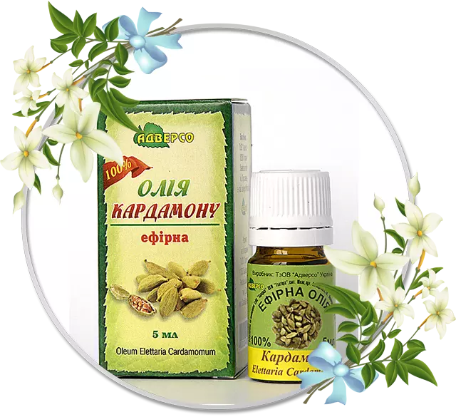 Ефірна олія кардамона нормалізує травлення, особливо в тих випадках, коли розлади виникають на нервовому грунті. Підсилює слиновиділення і покращує апетит. Олія кардамона зменшує дратівливість в передменструальний період, а також головний біль.