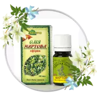 Ефірна олія миртова це запах щастя. Бактерицидний засіб. Застосовується при лікуванні бронхолегеневих захворювань (бронхіт, пневмонія, туберкульоз), урогенітальних інфекціях. Аромат мирта нормалізує роботу центральної та вегетативної нервової системи.