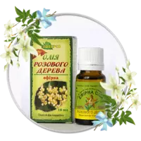 5 крапель олії розового дерева чи композиції олій змішати з 10 г основи (крему, тоніка, маски, гелю та інші).