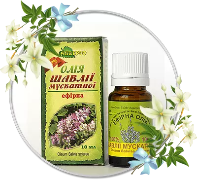 3-5 крапель шавлієвої олії чи однієї із композицій олій змішати з 1-2 столовими ложками будь-якої рослинної олії (персикової, мигдальної, кукурудзяної та інші) або вибраного Вами крему.