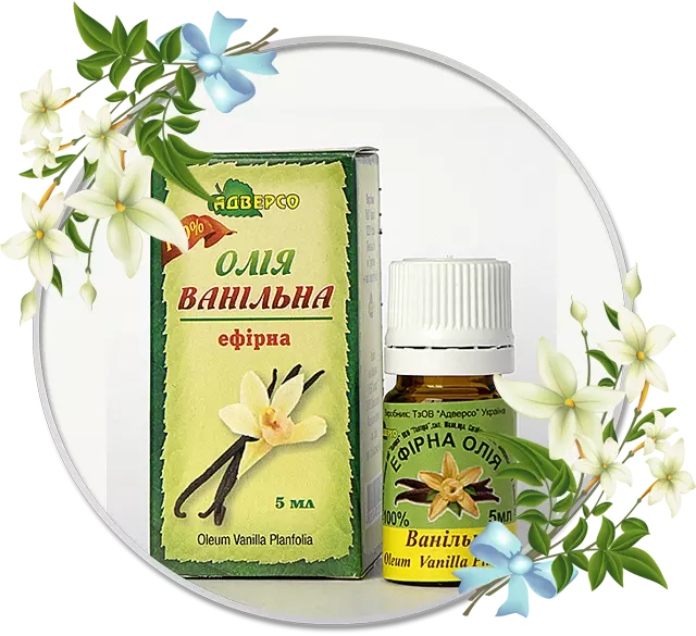 Ефірна олія ванільна використовується для підвищення потенції, заспокоює, усуває безсоння, полегшує передменструальний синдром, покращує самопочуття.
