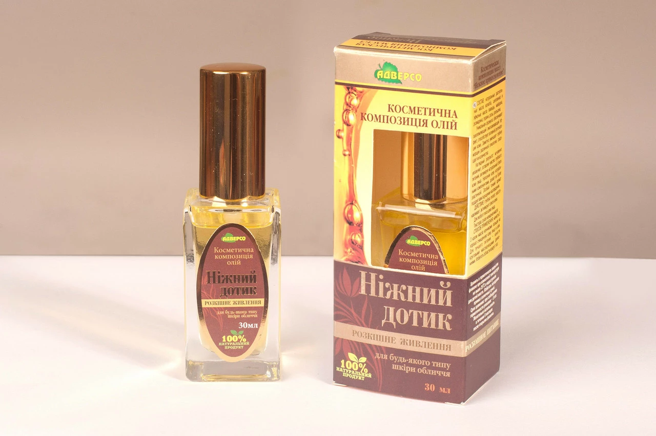 Натуральні рослинні олії жожоба, шипшини та ефірні олії лаванди, майорану, розмарину, герані, троянди, апельсину.