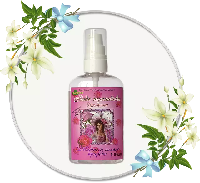 Стимулює регенерацію тканин шкіри, зволожує та пом’якшує шкіру, нормує функцію залоз і м’яко очищує пори. Надає тонус шкірі після зняття макіяжу. Сприяє красивій та рівномірній засмазі. У вигляді компресу допомагає від головних болей. Аплікації з водою троянди знімають втому з очей та відчуття «піску в очах».